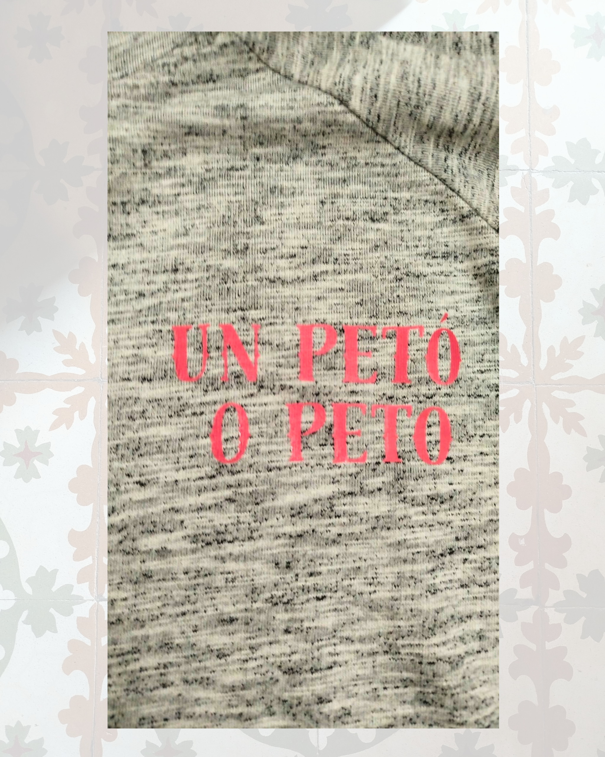 Está vinilizada por tela de maruja con la frase “petó o peto” (un beso o reviento).